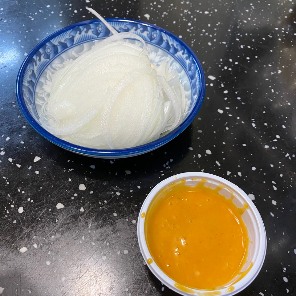 소스는 밑에도 깔려있는데 이렇게 뿌려먹게 따로 오더라구요 ㅋㅋ 양파채랑 소스 이렇게 같이 온답니다! ㅋㅋ
